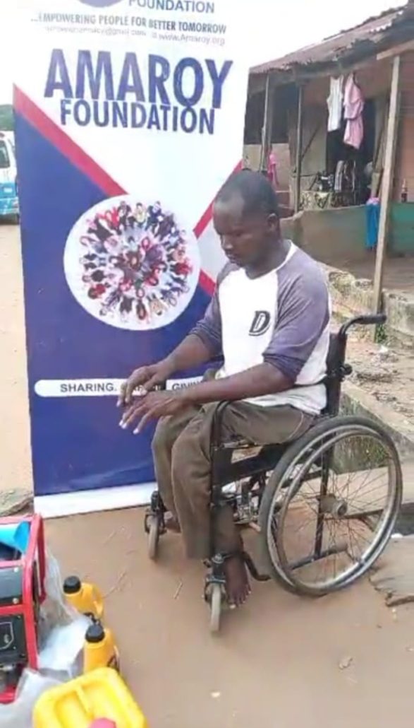 In a separate empowerment initiative, the Foundation identified and supported a physically challenged man Ifeanyi Nnanna at Umualum Nekede Owerri West LGA, Imo state struggling to sustain his electronics repair business. He was gifted a brand-new generator and cash support to improve his operations, significantly boosting his productivity and independence.