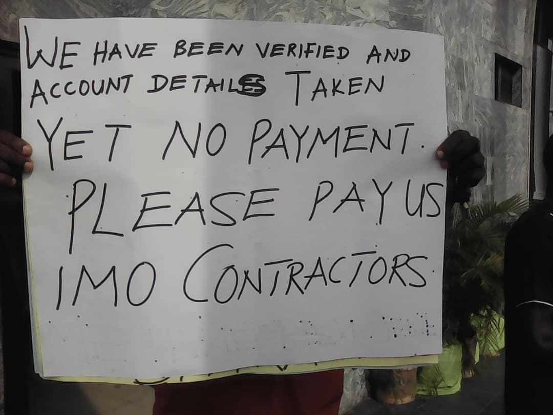 The Unpaid Imo Contractors who noted that they had written series of letters to the governor obliging him to pay them, regretted that all their efforts proved futile but hopeful to be paid soonest.