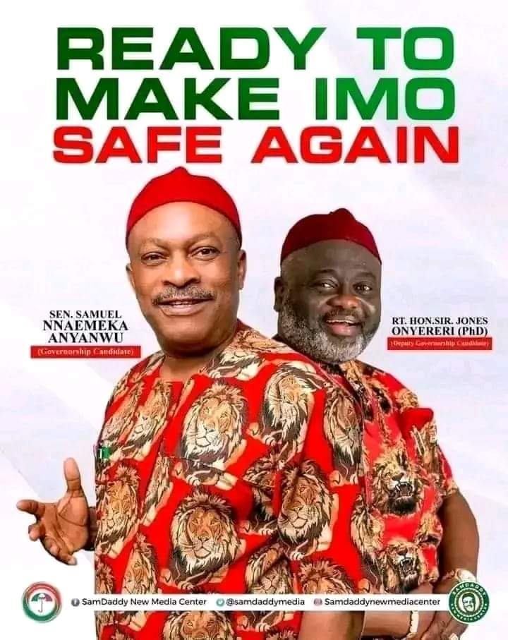 The Safe, Better and Greater Imo of our dreams that we pray and seek today would only be a reality when we put into actions and show and demonstrate unalloyed support to the incoming Government of the MAKE IMO SAFE AGAIN ably led by His Excellency, Sen Samuel Nnaemeka Anyanwu and Rt. Jones Onyereri , Ph.D.
