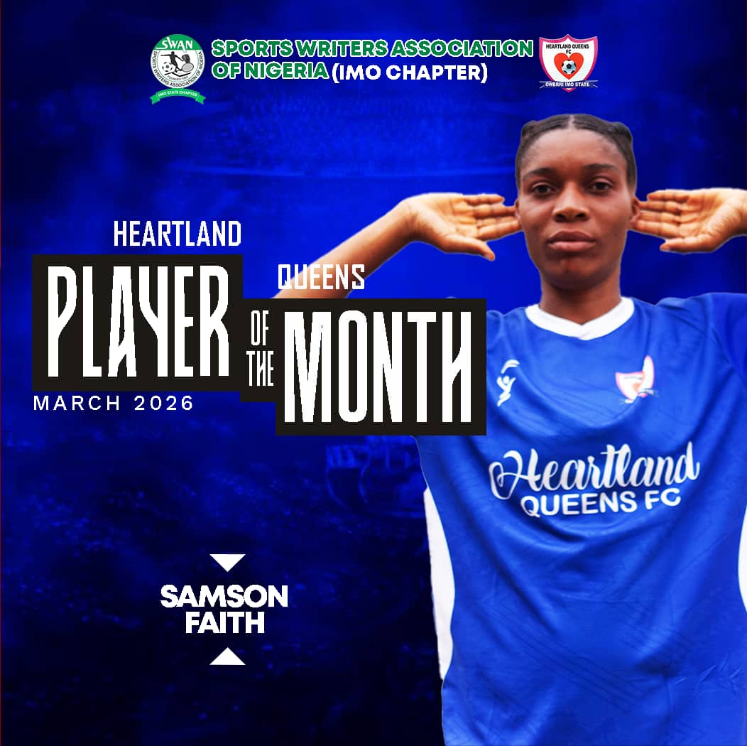 Forward Oluebube Umejiaku and midfielder Faith Samson have been recognised as Heartland Queens Players of the Month for February and March 2026 respectively by the Sports Writers Association of Nigeria (SWAN), Imo Chapter.