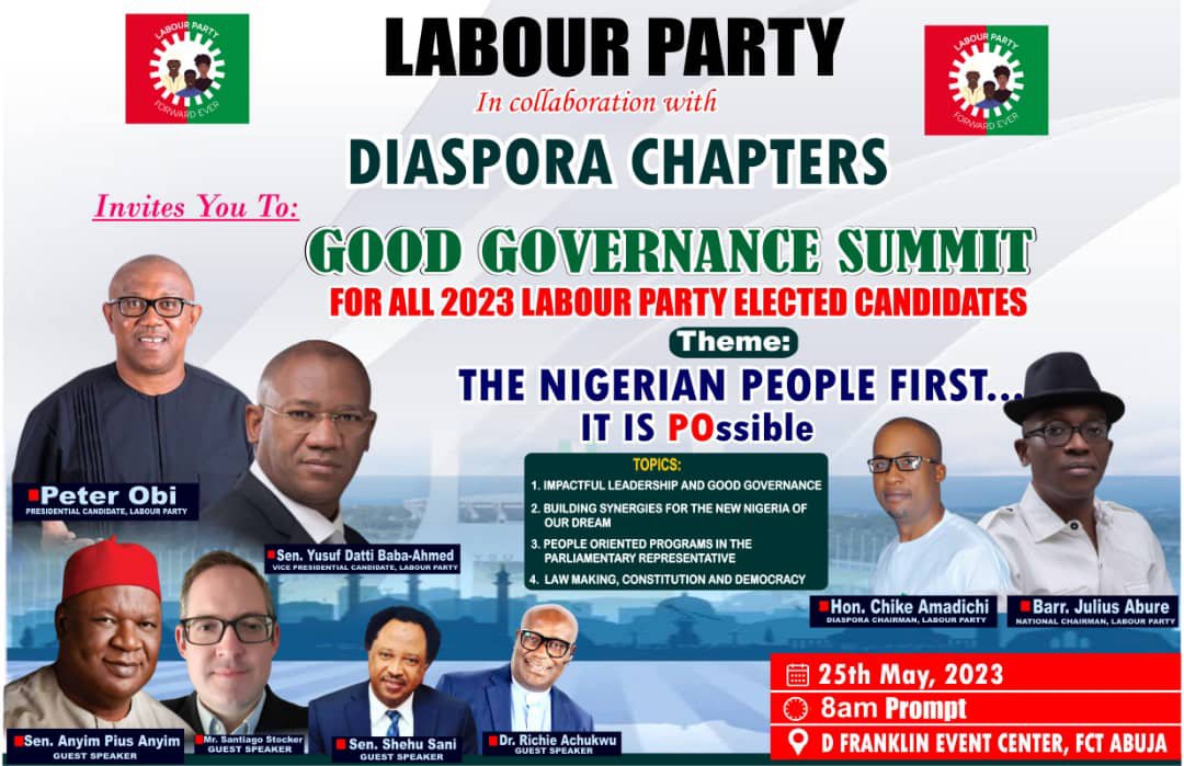 As the inauguration of elected politicians across Nigeria draws near, the Diaspora Chapters of the Labour Party of Nigeria in collaboration with the party leadership are set to hold a holistic and exemplary leadership summit tagged “Good Governance Summit” for all 2023 Labour Party Elected Candidates.