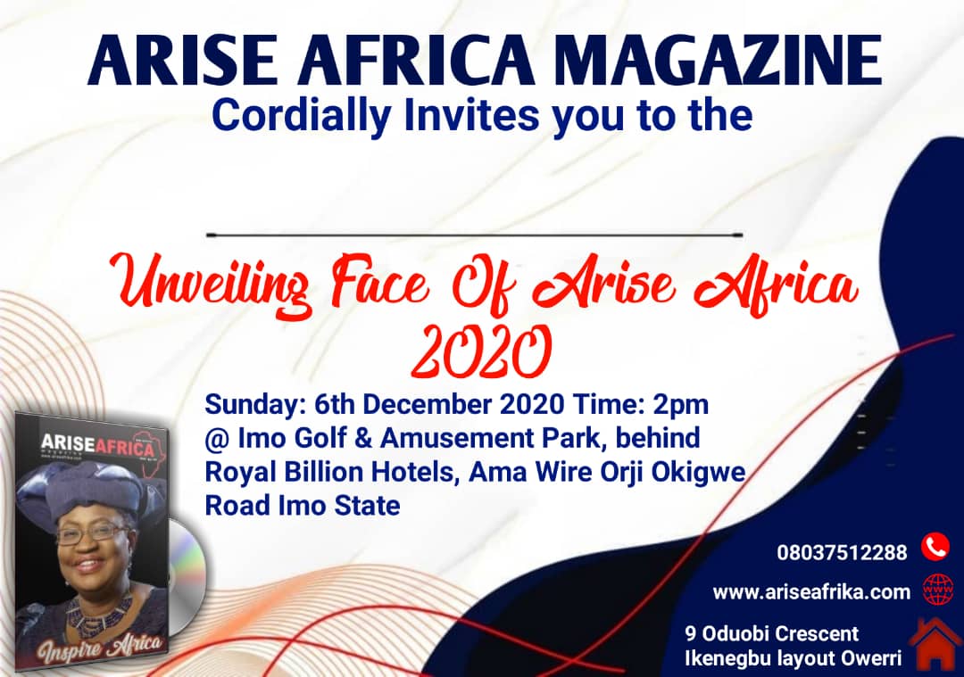 Owerri is agog as dignitaries across Nigeria and Africa converges on Owerri the state capital of Imo State for the grand Finale of Face of Arise Africa Beauty Pageant slated to hold on 6th December 2020 at Imo Golf and Amusement Park Behind Royal Billion Service Apartments, Orji, Owerri.
