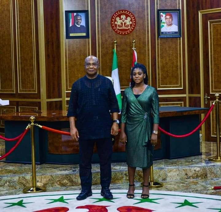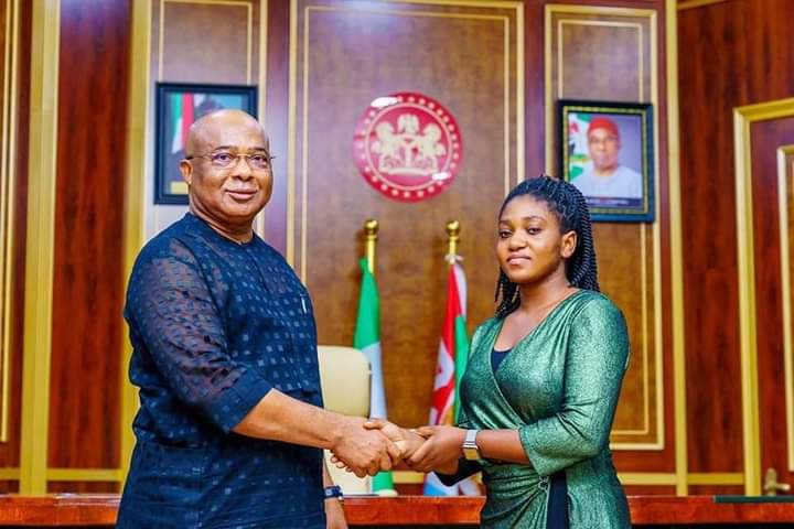Miss Chinaza Nwozuzu who hails from Ehime Mbano made outstanding performance of Nine (9) Alphas from the 2020 Senior Secondary Certificate Examination (SSCE) and was invited by the state Governor for the honour.