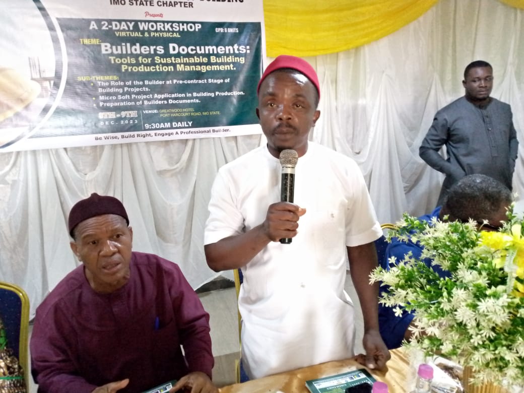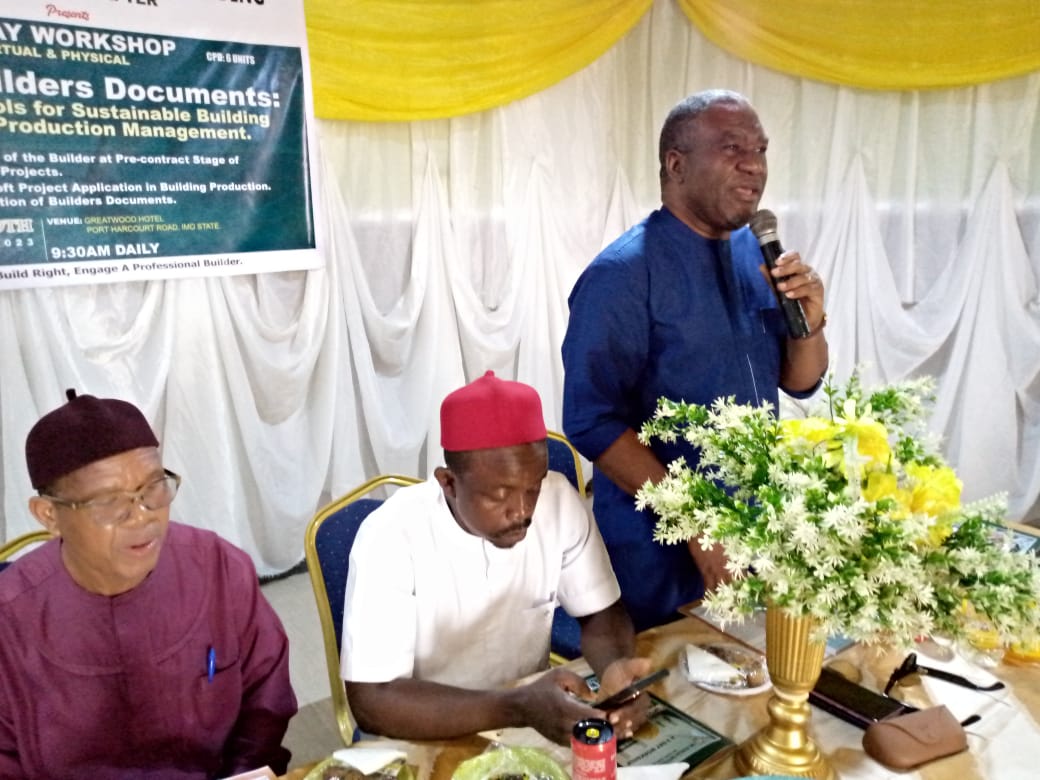 In his remarks, the representative of the General Manager, Owerri Capital Development Authority (OCDA) Surveyor Anselem Okere, congratulated the Builders on mounting the workshop and remarked that continuous professional development courses, make for good professionalism and being abreast with modern development in the industry.