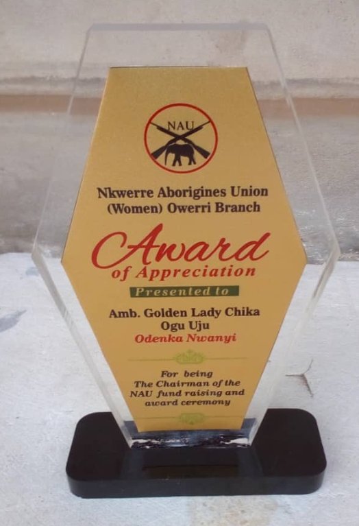 The “Odenka” Award of Ambassador Uju which described her as a “Golden Lady” is said to be in appreciation of her immense contribution to the union and “For being the Chairman of the NAU fundraising and Award Ceremony”