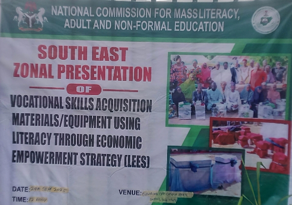 The National Commission for Mass Literacy, Adult and Non-Formal Education (NMEC) in its mission to carry all adults and out of school youths, on Wednesday September 24, 2025 empowered handful of artisans from the five South Eastern states of Imo, Anambra, Abia, Enugu and Ebonyi with startup tools needed to hit the ground running to make ends meet in their areas of specialty.