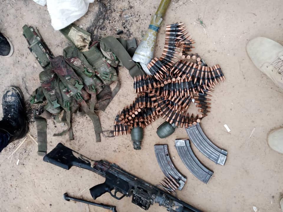 “Aside inflicting casualty on the insurgents, the gallant troops also captured one BHT/ISWAP Heckler and Koch 21 Guns, Three AK 47 rifle magazines, 213 links of 7.62mm (NATO) and two grenades”