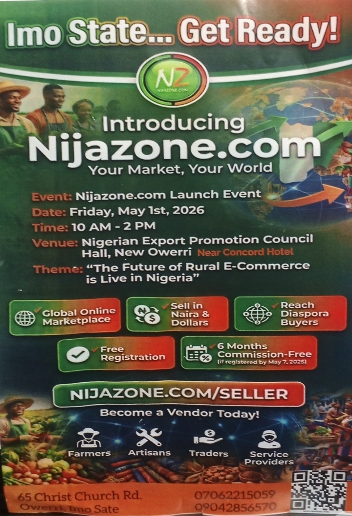 OWERRI — Nijazone.com, a new e-commerce retail platform designed to connect farmers and artisans to buyers worldwide, will officially launch in Owerri on Friday, May 1, 2026, with a strong focus on empowering rural communities across Imo State.