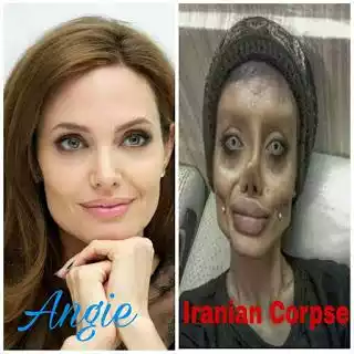 Pictures if An Iranian girl has gone viral after she claimed she’s had 50 surgeries in a bid to look like her idol Angelina Jolie. Sahar Tabar claims to be one of the Tomb Raider actress’ biggest fans and has said she “would do anything” to emulate her.