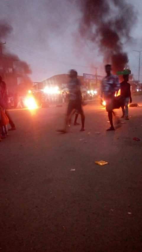 Happening Now at EKEUKWU OWERRI MARKET, Douglas Road Owerri as OWERRI ndigent youths burn tyres to show their unsatisfaction to the relocation of the community market.
